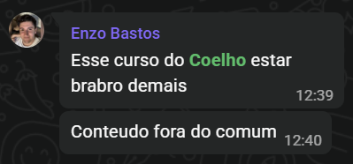 Não conseguiu resultados com o meu conteúdo ou simplesmente não gostou da minha voz. Solicite o reembolso e não farei perguntas. Digo isso porque me garanto na qualidade didática dos meus conteúdos.